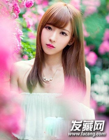 唯美柔顺的中长直发发型,柔顺飘逸的长发发型,加上微卷的斜刘海点缀显露出个性与时尚感来,加上贵族棕色的点缀十分显清新。