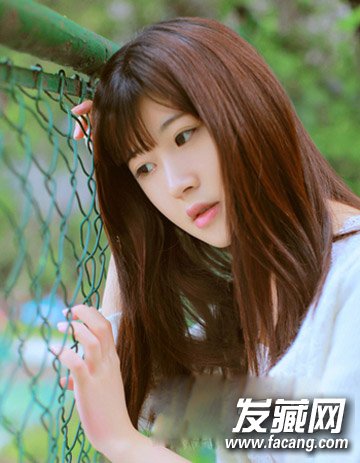 甜美的校园发型设计这款中长发再好不过了,柔顺的中长直发披肩将女生的文艺气质显露出来, 加上栗色发色自然显大方,刘海可以显得更为柔美一些。