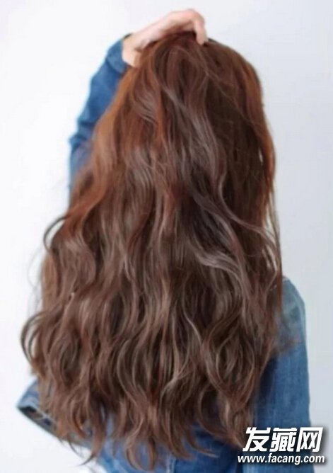 5、波浪卷发看起来大气又美丽,头发多的女生可以试试,出来的效果特别棒,染上红棕色,时尚又有个性,光是波浪般的卷发背影就女神范十足,美哦!