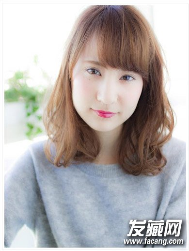 发型点评:这款发型推荐给长脸MM们,轻柔的侧分长刘海遮盖住整个额头,搭配空气感烫发清新动人。