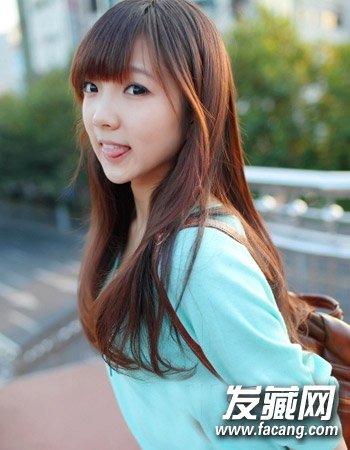 一款清新的学生发型设计,甜美的平刘海发型加上气质的发尾微卷显露出俏皮可爱的一面来,简单自然的发色勾勒出别致的时尚感来,而且造型简单大方。