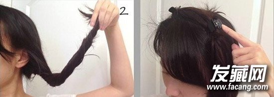 Step 2 拿起辫子的尾部,用发卡将它在头顶固定。