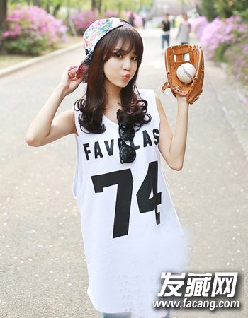 这种空气感刘海配合中长式的发梢卷发造型也很显女生的甜美可爱感哦,清新自然的深色系染发与一顶倒扣的帽子造型最显女生的活力感了。