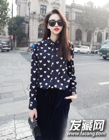一款很显时尚范的女生中长发发型,这种顺直自然的中长直发其实也可以营造出最时尚也最迷人的气质感哦,偏分的设计与一副墨镜相搭会让你一秒钟变身潮流女神范。