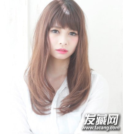 轻盈的齐刘海遮盖住整个额头,凸显出灵气十足的双眼。栗棕色的中长发轻柔的包裹脸颊,凸显出完美的脸部线条,瓜子脸十分清纯。