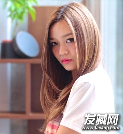 圆脸MM也可以试试这样的一款中长发哦。偏中分的刘海露出眉毛的设计清爽大气,棕黄色中长发随意摆动,可爱度飙升。