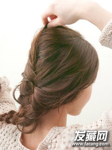 步骤五:从头顶到辫子的地方用手拉扯出蓬松感。