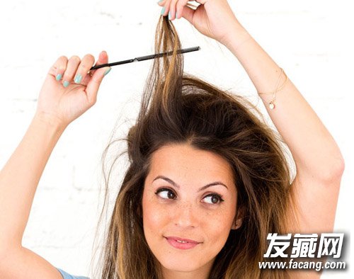 第1步:用鼠尾梳挑起头发,从发尾到发根倒梳。使得头发看起来更有质感。