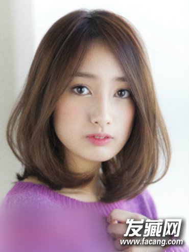 中分的刘海可以遮住圆脸或者方脸美眉的大脸庞,起到修饰脸颊的作用,两边的头发垂顺向下,微微内扣的发尾看起来十分自然,搭配栗色染发,给人一种清新甜美的朦胧美感。