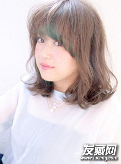 一款非常清新俏皮的中长发发型,蓬松内扣的齐刘海打理出充分的轻盈感,显得非常的灵动飘逸,搭配蓬松的短卷发,瞬间减龄5岁。