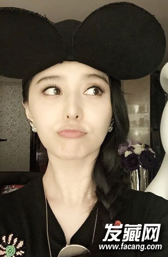 松散随意的侧编发,加上头戴俏皮可爱的米奇帽,嘟嘴卖萌哦!