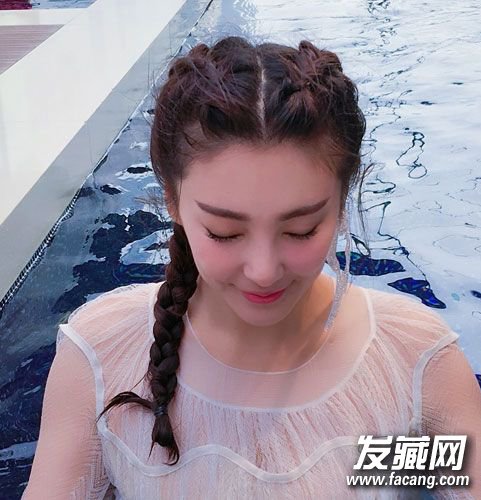 从发顶就开始分扎的俏皮编发,到最后汇聚成一股,粉嫩的脸颊,低头浅笑,柔美的呢!