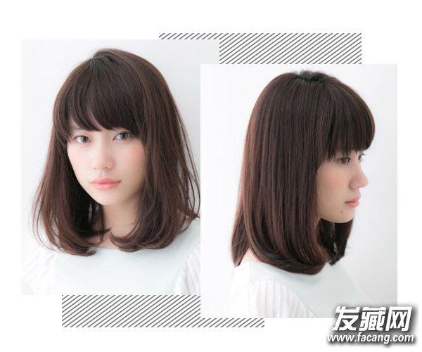 超简约的中长发造型,但看起来就是那么美,轻微内扣的斜刘海搭配直发中长发能打造出好看的小脸,发尾层次修剪加微卷,简单但不失时尚。