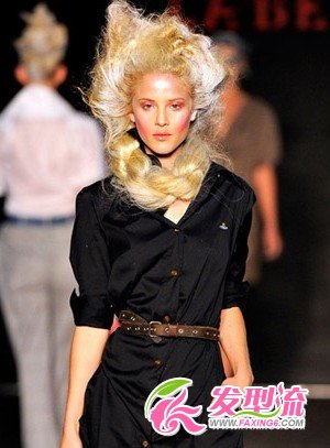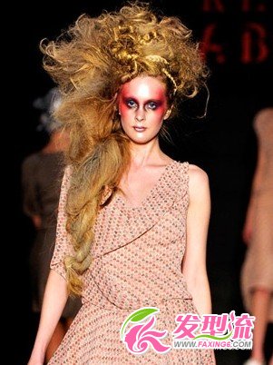 T台上强烈的视觉冲击效果展现出时尚与魅力,将头发编制成发髻盘旋在头顶上方,显得这款发型蓬松张扬有个性!金黄色的染发发型更是凸显了非主流与平日的发型的不同之处!这款非主流发型的亮点在于粗略编制的麻花辫,增添了少女的味道!