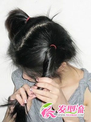 步骤二将两个扎起马尾用力卷起来,小编温馨提醒在卷的时候不能松掉了哦!