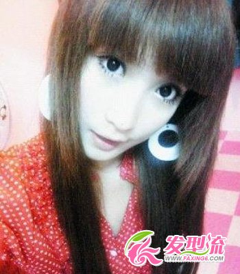 柔顺的长直发非常飘逸动人,有着最原始的自然美,闪耀着迷人的光泽。略过眉的齐刘海带出女生的甜美可爱,与包裹着脸颊的发丝很好地修饰了脸型。淡淡的栗子色发色,更显青春活力和时尚范儿。