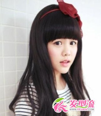 圆弧刘海+蓬松长发 黑色的长发最能展现出女生清纯的气息,保留了最原始的自然美。厚重的圆弧刘海衬托出精致的脸型。发尾微卷的烫发很有公主范儿,打造蓬松效果,搭配甜美的蝴蝶结发箍更显出挑。
