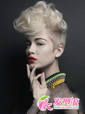 这款非主流发型的长度控制在耳垂出,利用短发演绎出2012最新发型的时尚风格!秀发侧重于前额,将前额的秀发制造出野性的卷曲,神秘又迷人的效果立现!挑染的发色搭配浓郁的烟熏妆,魅惑了我们的双眼!