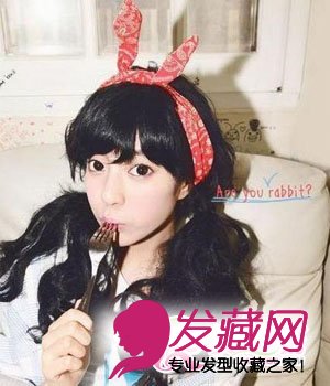 不规则刘海+卷发扎发 不规则的刘海,带出MM率真和不羁的个性。卷发扎出两条马尾辫,把小女生的童真和可爱演绎得淋漓尽致。再加个可爱的兔耳朵发带,倍显俏皮气息,非常有爱的一款发型噢!