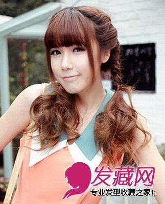 麻花辫发型扎法与马尾的韩式发型扎法相融合,彰显出了女性时尚靓丽的气质,同时也令发型显得更加富有时尚感,瘦脸齐刘海发型两侧故意余留几缕稍长的发丝,极具妩媚风情,是一款俏皮时尚的女生发型。