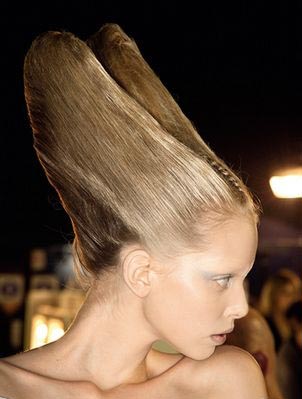 配合时装的立体剪裁,发型在体积上的膨胀感瞬时成为视觉焦点!充满建筑轮廓的大胆造型,相互叠加的动感形式,“遥不可及、高高在上”才是本季狂热不败的发型关键词!