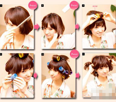 Step4:处理头顶区。将你后面的头发分成头顶区和其他区,两部分。我们先处理你的头顶区。用鬃毛梳将你头顶区的发流梳顺,然后分成2~3层用鹤嘴夹固定。由内向外整理你的头发,创造出发型的蓬度。先处理最里层的头发,将卷发 器接近头发的根部,先向上拉,再向后卷动你的卷发器,然后固定。其他层次的头发也使用同样的方法处理。这样,你就可以拥有像娃娃一样蓬蓬的后脑勺头型!