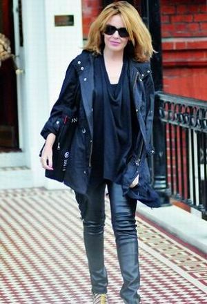 厚重整齐的发型让Kylie Minogue俨如50年代的女星,倒是不整齐的发缝添了几许潮味,这个发型适合身材丰满的熟女,很有韵味。