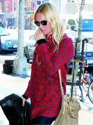 Kate Bosworth俨然一副摇滚女歌星的派头,只是头发有点太直、太贴了,显得很死板,乍一看还以为是某位留长发的男歌手呢。