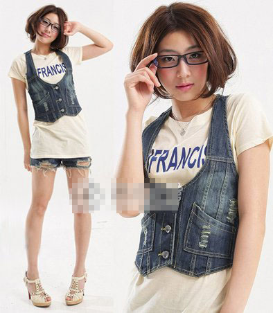 春季穿搭:字母Logo长Tee搭配高腰牛仔马甲 和热裤,简单清爽中性范儿装扮,春季出游装扮一分钟搞定!