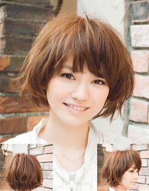 点评:许多MM告别旧情以后都会选择剪短三千烦恼丝,那就不妨选择这款短发 吧,小编强力推荐哦。较为轻薄的自然直发加上空气感以后呈现出圆润的丸子状,把脸蛋显得细小又可爱。及眉的刘海 加强了整个发型的无造作感,不经意就能突出你的韵味哦。相信谁都想拥抱这位纯情佳人呢。