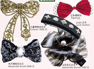 这类发饰多为花朵或蝴蝶结形态,如果是简洁设计就是直板状发夹,完全可以多个混搭 。