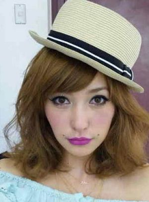 丽娜的齐肩卷发 搭配藤制小帽,非常的时尚动感。