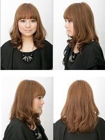小编点评:A字形的烫发也是今年的热点之一,中长发与A字形烫发十分般配。这款发型就是采用这种设计的。两颊内翻卷翘,发尾内弯卷翘令发型带出一定的质感,像注入了空气一样自然蓬松,短至眉毛上方的束感刘海 拉长了全脸比例,有修颜效果哦。推荐给中长发的MM试试。