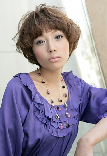 小编点评:这是一款强大的掩龄发型哦。往鲍勃头里面注入满满的空气感造成丸子形,随意感的齐刘海 和以内翻为主的卷发 营造修颜效果,这款发型的发色更是采用了流行的栗色,让你摇身一变成时尚达人哦。