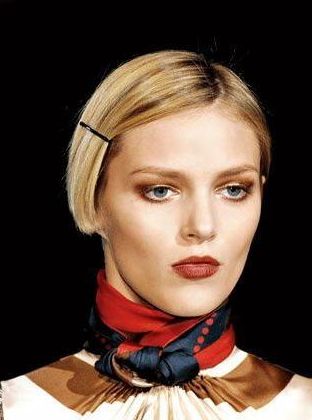 长的斜分发型在别发卡的位置上其实很有讲究,选在一侧的太阳穴与眉骨左右的位置,可以很好地修饰圆脸,又不会显得很乡土。