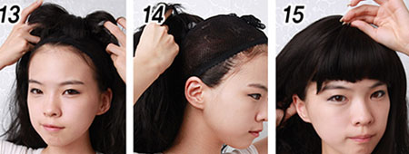 13-14.拿好假发 准备望头上戴。