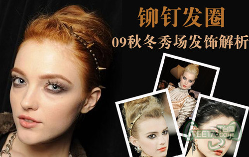 Zac Posen 09秋冬秀场:杜鹃的黑发选择了黑色铆钉发圈