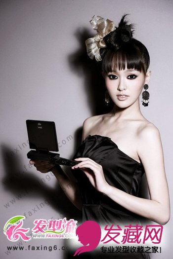 高扎的丸子头清新怡人,给人以清爽的感觉,丸子头的打造也显得唐嫣更加的高挑,蝴蝶结发饰做点缀,甜美优雅,同样是齐刘海造型,凸显出一双清澈的双眸,妖媚的眼妆造型,很是性感。