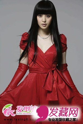 范冰冰最喜欢的就是直发发型了,一头乌黑亮泽的长直发发型,如瀑布般直泻而下,尽显女性温婉优雅的气质,齐刘海的发型设计,凸显出一双魅惑的眼睛,搭配红色的裙子,魅惑指数瞬间飙升。