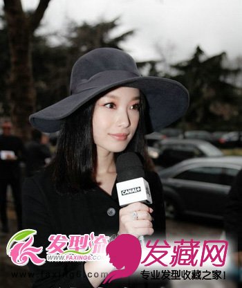 一顶别致典雅的黑色大边帽子把刘海遮住,两条柳眉清晰可见,黝黑的直发自然的躺在肩上微微的内卷,白皙的玉手拿着麦怡然自若的接受着媒体的采访!