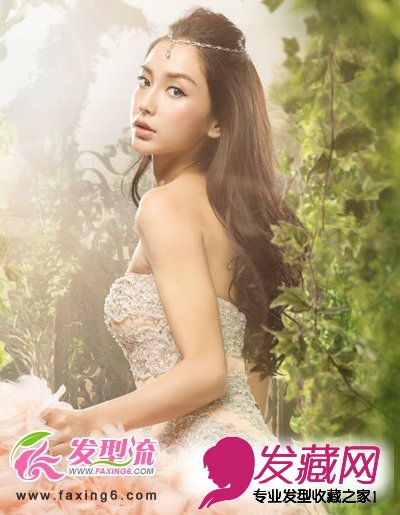 这款长长的卷发散发着浓郁的性感浪漫气息,卷发发型随肩披散,更显自然大方。将刘海部分的头发弄出发髻高耸再头顶,从视觉上拉长了整个脸型,发饰的搭配,性感娇艳,有着浓浓的异域风情。