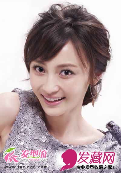 将头发在后脑勺比较低的位置盘起,既显高贵优雅,又散发着浓浓的妩媚气息。发丝的凌乱感让姚笛看上去更有灵动美,修剪的稍短的斜刘海,露出光洁的额头,清新怡人。