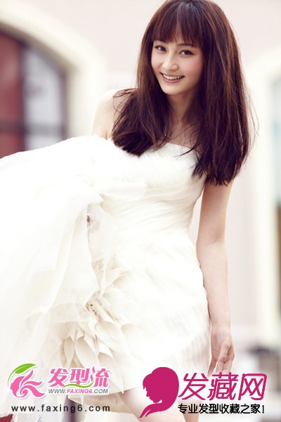 直发发型绽放着清纯的韵味,诠释着姚笛的清新可爱气质。质感丰盈的直发发型垂在胸前,塑造出了小脸美女,搭配齐刘海发型,为彰显清纯起到画龙点睛的作用。