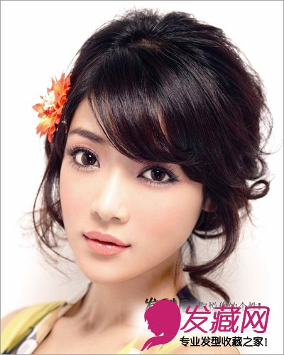 盘发发型优雅又高贵,花朵发饰点缀看起来清新自然。