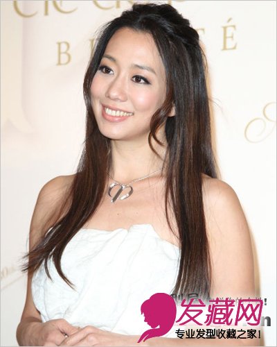 无刘海长发造型露出五官,呈现成熟女人的优雅文静。