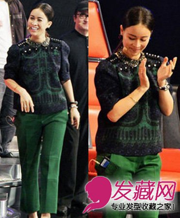 那英中国好声音现场的中分低扎马尾,加整身的时装搭配干练端庄而又有英姿飒爽气质。