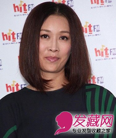 齐肩中分发型,完美的修饰那英精美脸型轮廓,内扣的发尾,时尚优雅,加栗色染发搭配更靓丽大方。