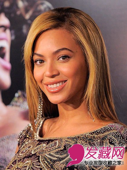 适合鹅蛋脸的发型中,齐肩直发一直是个不错的选择,可是Beyonce的这款重点是发色,光泽感为她加了不少分。不外Beyonce自己就是个性感十足的女人。