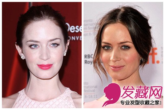 右:Emily Blunt选择中分和侧边刘海还起来就要好许多。