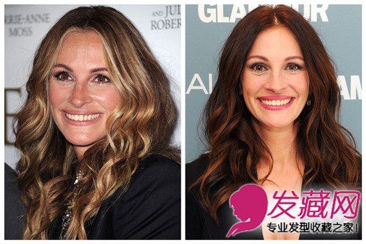 右:头发染成焦糖色是不是看起来就好许多,同样的Roberts,这次的感受似乎刚从海滩度假回来,活力十足。
